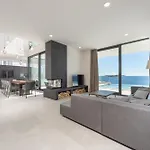 De 5-slaapkamer Sensational Rogoznica Villa 5 Bedrooms Villa Miracle Balcony Overlooking Sea kijkt uit over de zee. De accommodatie beschikt over een badkamer met een douche. Badlakens zorgen ook voor een comfortabele ervaring.